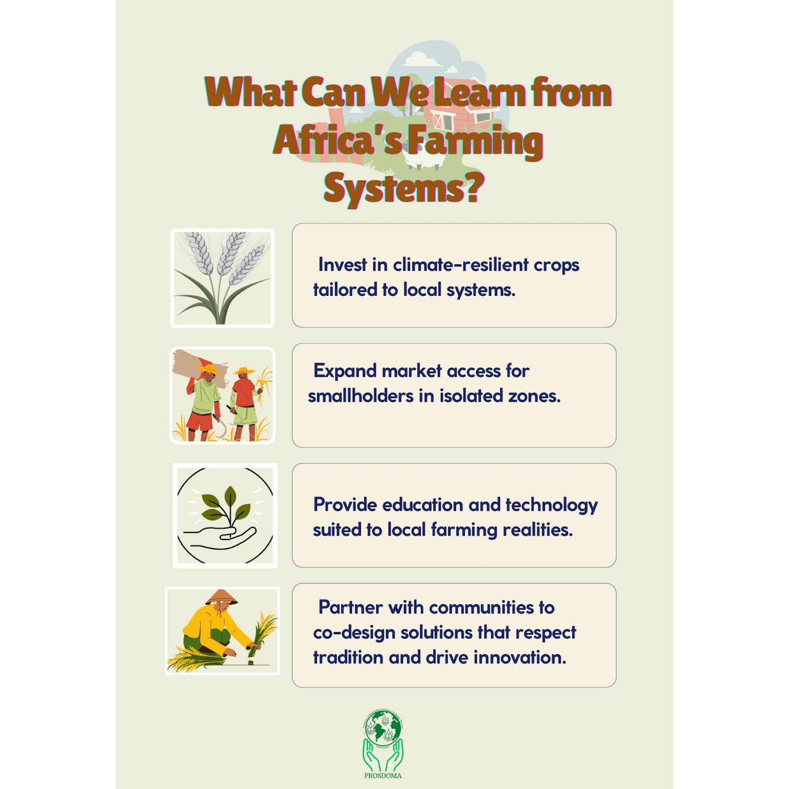 At PROSDOMA, we believe agricultural sustainability is a justice issue. Through our cross-continental initiatives, we aim to empower rural communities with knowledge, tools, and trust. Because the future of food security in Africa begins with farmers—and ends with dignity.